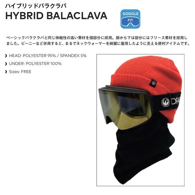 ベーシックバラクラバと同じ伸縮性の高い素材を頭部分に採用。顔から下は部分にはフリース素材を採用し