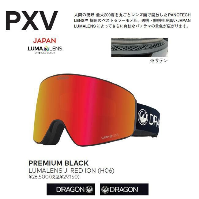 25-26モデル ジャパンフィット 曇らない×広視界で快適ライディング 予約 DRAGON ゴーグル PXV PREMIUM BLACK /J.RED (H01) 25-26 ドラゴン JAPAN FIT 正規品