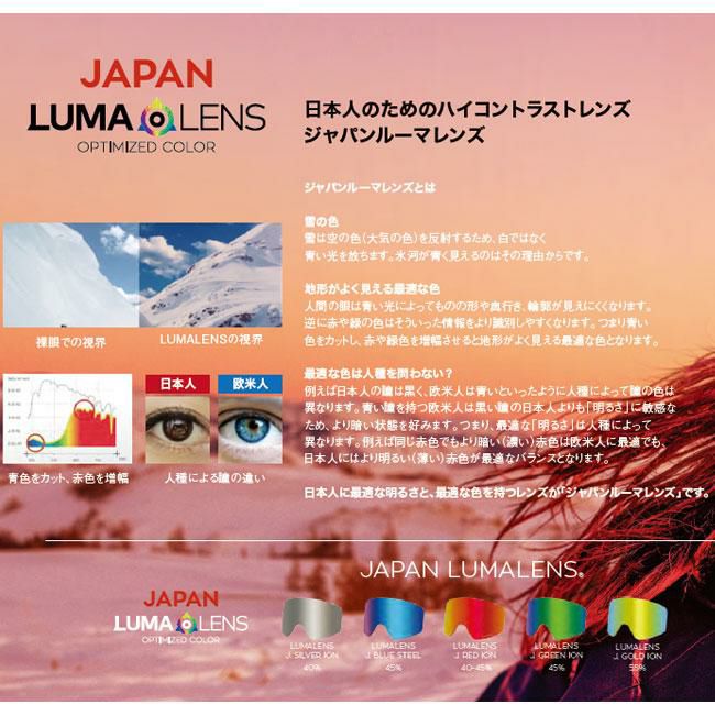 海外モデルとは異なり、日本人の骨格・瞳・雪山環境に最適化された仕様で、フィット感・視認性・快適性が大きく向上。