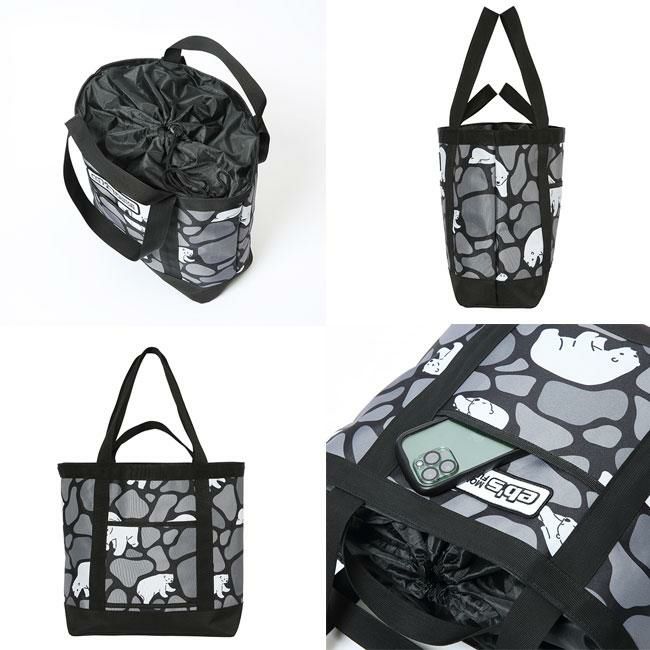 スノーボードトリップや日常使いにも最適なeb's CONTAINER TOTE。巾着式の開閉口で荷物の出し入れが簡単。手持ち・肩掛けどちらでも使える2WAY仕様。キャリーバッグとジョイントできるスリット付きで、CONTAINER WHEELとのセットアップも可能。使い勝手抜群の22Lトートバッグ。