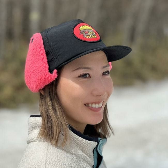 ○耳当て付きであたたかい撥水素材のナイロンキャップ