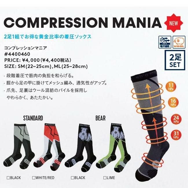 他の画像を見る 【eb's商品2点以上購入で5%OFFクーポン】 2足セット 着圧ソックス eb's エビス COMPRESSION MANIA / BEAR スノーボード スノボ スキー 靴下 くつ下 メンズ レディース eb's2点以上で5%OFFクーポン対象商品(※決済画面で選択できます) 定価 ¥ 4,400 のところ 特別価格 ¥ 4,400 税込 在庫切れ カートに入れる お気に入りに登録する