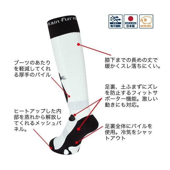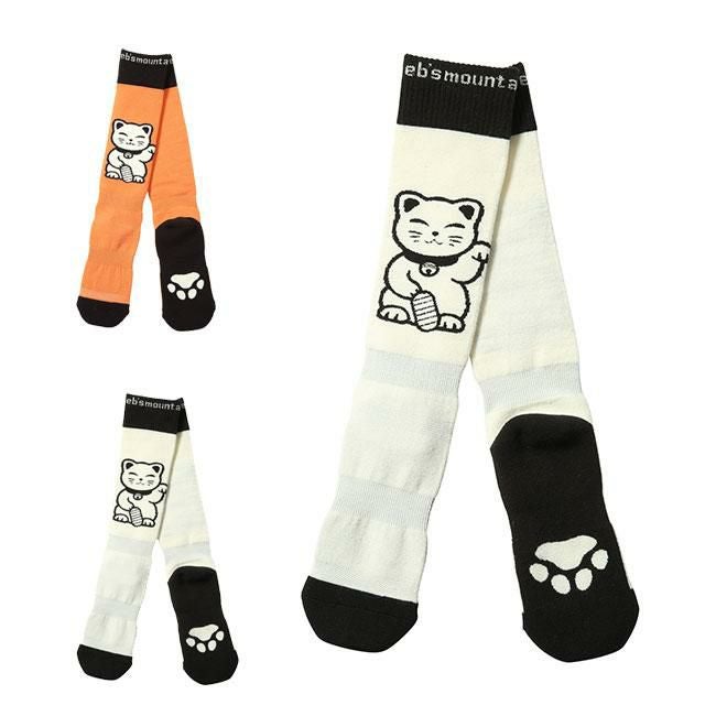▼ eb's(エビス)の「VERY WARM MANEKI(ベリーウォーム マネキ)」は、かわいい招き猫デザインが人気の日本製スノーボードソックス。ウール混素材とパイル構造で抜群の保温性を発揮し、冷たい雪上でも足元をポカポカにキープ。ズレにくいフィット感と縁起の良いデザインで、冬のゲレンデを快適に彩ります。
