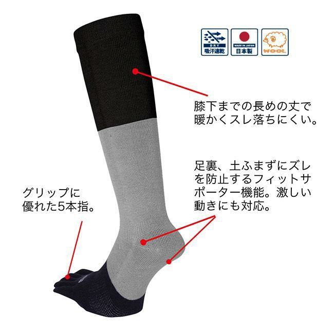 ▼ eb's(エビス)の「SUPERGRIP 5F(スーパーグリップ 5F)」は、ウール&アンゴラ混紡素材を採用した高機能5本指ソックス。抜群のグリップ力と保温性を両立し、冷え知らずの快適な履き心地を実現。ズレ防止サポーター付きで安定感も抜群の日本製ソックスです。