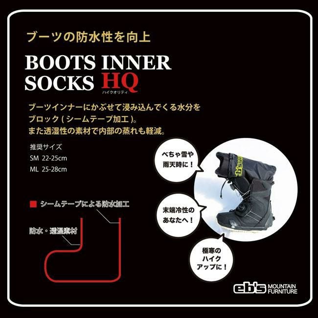 【期間限定eb's商品2点以上購入で5%OFFクーポン】 ブーツインナー eb's エビス BOOTS INNER SOCKS HQ 水濡れを防止 ブーツの防水性・保温性UP