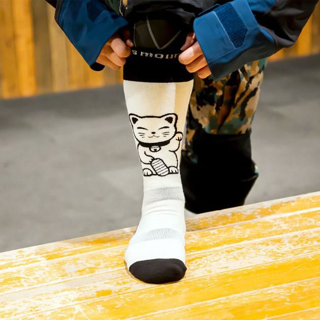 【eb's商品2点以上購入で5%OFFクーポン】縁起の良い招き猫デザインの極暖ソックス エビス eb's ベリーウォームマネキ VERY WARM MANEKI 25-26 スノーボード ソックス 日本製 保温性 吸湿発熱 正規品