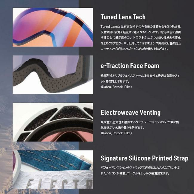 ELECTRICのコントラストレンズ「CONTRAST LENS」は、ピンクとイエローを最もコントラストが出るように混ぜ合わせたELECTRIC独自のレンズカラーをベースに、強い直射日光を和らげるCHROME(クローム)コーティングを施したゴーグルレンズ。