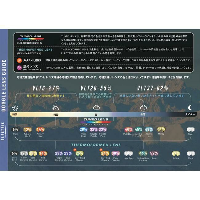ELECTRICは1999年にアメリカ カリフォルニア州のサンクレメントで誕生したアイウエアブランド。 創設者はBEASTIE BOYSらの愛用を生み、エクストリーム系サングラスブランドのメジャー化を成し遂げたグレッグ・アーネットの息子のキップ・アーネットとレジェンド・スノーボーダーのピーター・ラインです。ゴーグル界の中でもトップクラスの開発・クォリティで世界中で人気の高いブランドです。