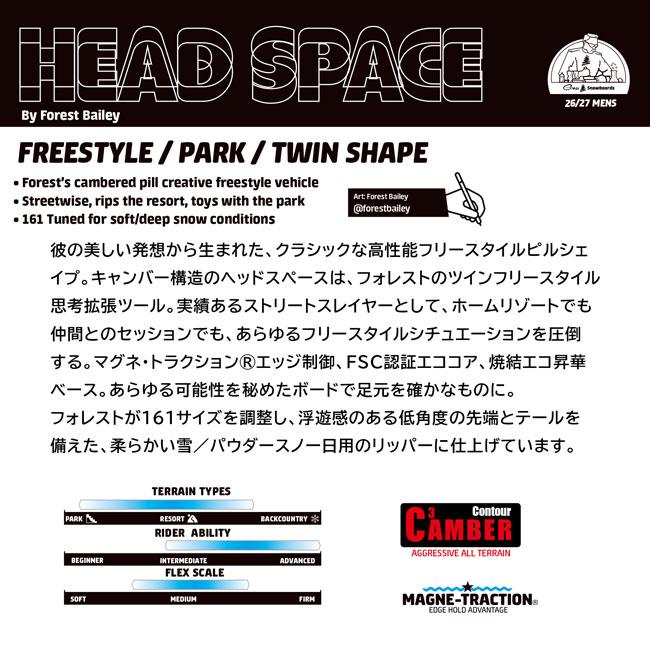 GNU グヌー HEAD SPACE フォレストベイリー スノーボード メンズ フリースタイル パーク ストリート ジブ C3キャンバー MAGNE TRACTION ツインチップ