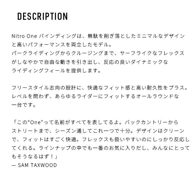 NITRO ONEは、柔らかさと操作性を重視したフリースタイル志向のオールラウンドバインディング。