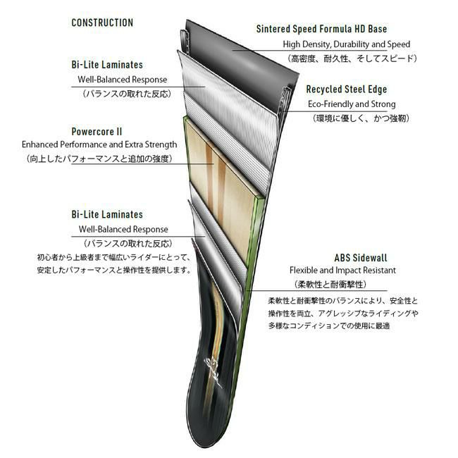 トゥルーキャンバーによる反発力、スタンダードコアプロファイルの均一なフレックスにより、どんなコンディションでも安定したコントロール性を発揮。
