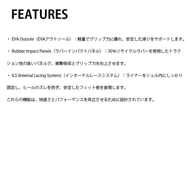 TLSスピードレーシングにより素早い締め上げが可能で、内部のILSシステムがブーツ内でのズレを防ぎ、パワーロスを最小限に。
