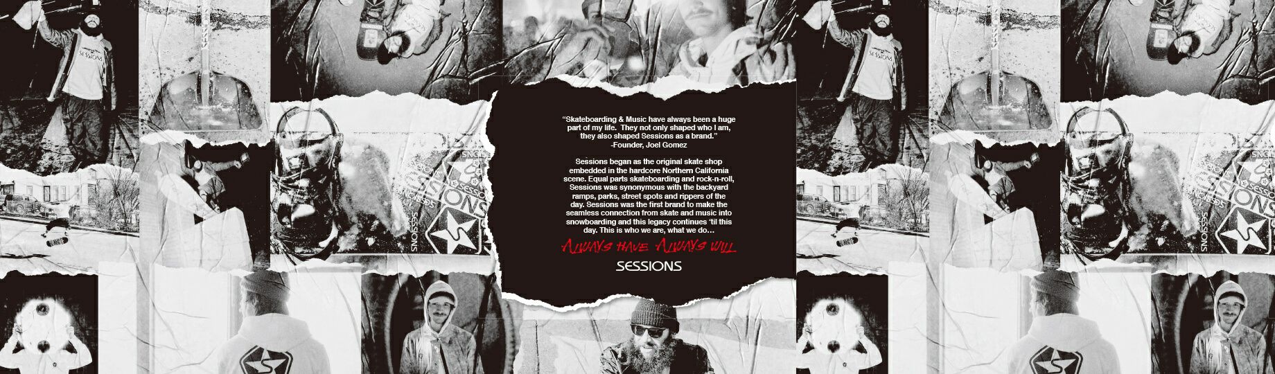 カリフォルニア州サニーベイルでSESSIONSはショップと共に産声をあげた。80~90年代のSESSIONSと言えば、ジェイミー・リンをはじめ、マイク・ランケット、クリス・ローチ、アーロン・ヴィンセントといった強烈な個性のライダーをサポート。彼らの着こなし、ライディングスタイル、ぶっ飛んだライフスタイルにいたるまで、世界中のスノーボーダーが彼らの動向に一喜一憂した。そしてアウターウエアのイノベーターとして、産業の礎を築き上げることに大きく貢献。ブランド誕生から30年余りが経過した今も優れたアウターウエアを開発し、ボヘミアンなライフスタイルを提唱し続けている。