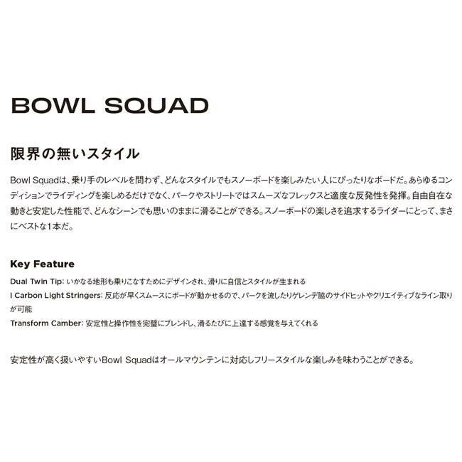 SIMS SNOWBOARD 2025-2026モデル「BOWL SQUAD(ボウルスクワッド)」は、フリースタイル志向のライダーに最適な軽量ツインチップボード。Transform Camberが安定性と自由度の両立を実現し、ジブ・グラトリ・パークライディングを思い切り楽しめます。Carbon Lite構造により反発力をキープしながら操作性を強化。初心者から中級者まで扱いやすい万能モデルです。