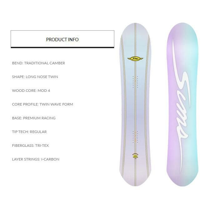 NUB(ナブ)のJAPANLIMITEDGRAPHICSは美しいカラーリングが目を引くデザインが特徴。ロングノーズツインシェープや先進的なサイドカットが、たとえサイドカーブの深さがツインチップ形状であっても、あたかもディレクショナルボードのように見せかける。ディレクショナルシェープ特有の引っ張り感がなく、スイッチでのライドやランディングが可能。ロングノーズはパウダーにおいて大きな浮力を生み出し、そして理想的なスタンスを取ることにより、トラディショナルキャンバーのスイートスポットをより効果的に生み出すことができる。