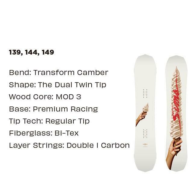 SIMS SNOWBOARD 2025-2026モデル「VANILLA(バニラ)」は、軽量で操作性の高いデュアルツインチップ形状を採用。Transform Camberが安定感と取り回しの良さを両立し、女性や小柄なライダーにも扱いやすい設計です。パーク、カービング、ジブなど幅広いライディングスタイルで活躍する万能モデルです。