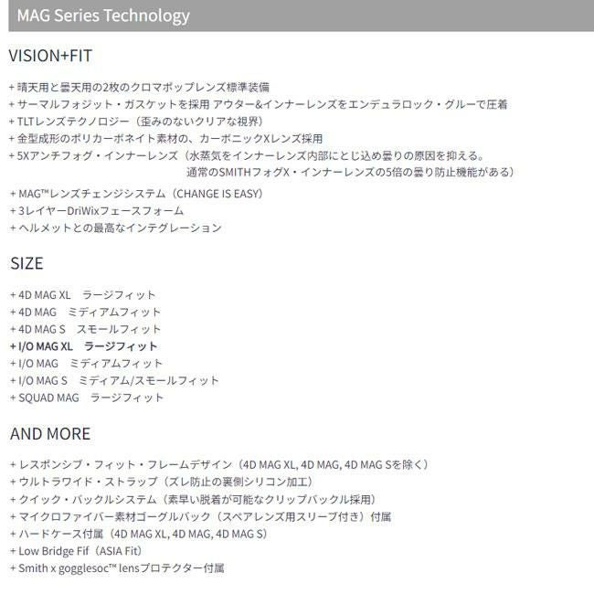 SMITH スミス ゴーグル I/O MAG XL アイオー エックスエル ブラック CP PRO PHOTOCHROMIC GOLD MIRROR CP STORM BLUE SENSOR MIRROR 調光レンズ 曇らない 曇り止め 広視野 球面レンズ メンズ レディース スキー スノーボード メガネ対応 OTG対応 ASIAN FIT アジアンフィット 2025 2026モデル 正規品 レンズ交換 簡単 高性能