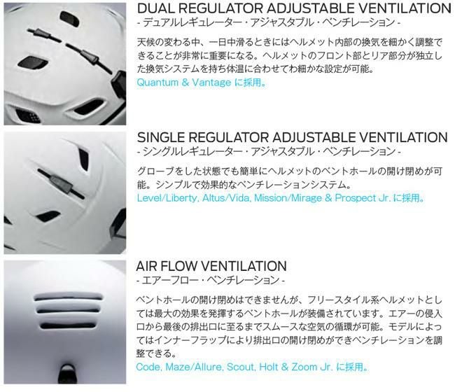 超軽量&低重心モデル。 世界で、そして日本で今一番の人気を博しているスケートスタイルのスノーヘルメットはまちがいなくメイズ/ アルーアだ。ヨーロッパやアメリカのスノーヘルメットにおける安全基準をパスしたもののなかで世界1-2を争う軽量モデル。これほどシンプルで軽量なシェルの内部にSMITH が誇るエアーフローシステムAirEvac を装備。スロープ、ハーフパイプなどエアー技の多い競技者の多くは軽量かつ高いプロテクション性能を持つメイズを選ぶ。