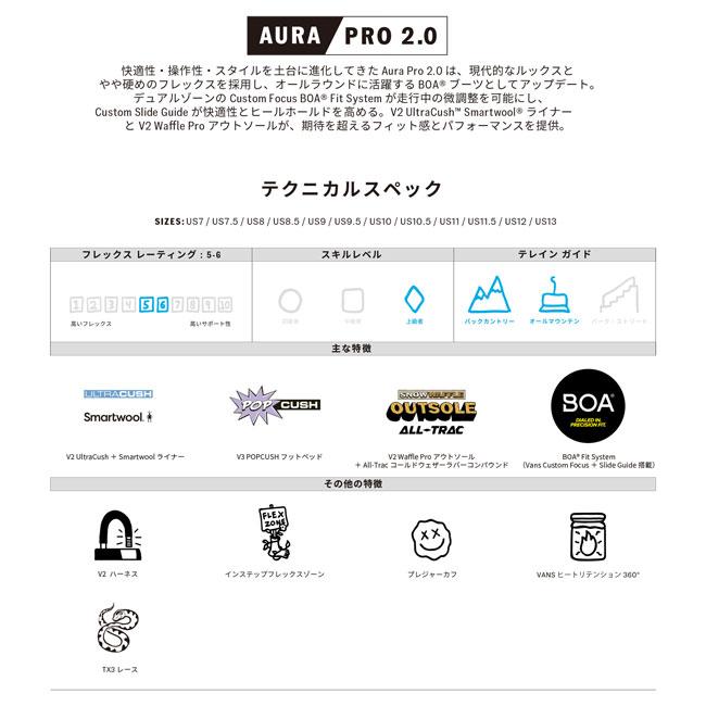 VANS バンズ AURA PRO 2.0 オーラ プロ スノーボードブーツ ダブルBOA フリーライド オールマウンテン メンズ 26-27