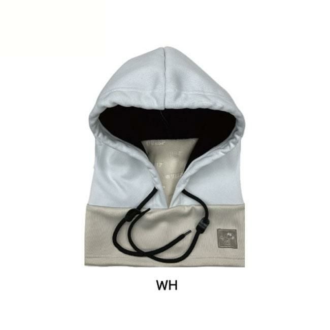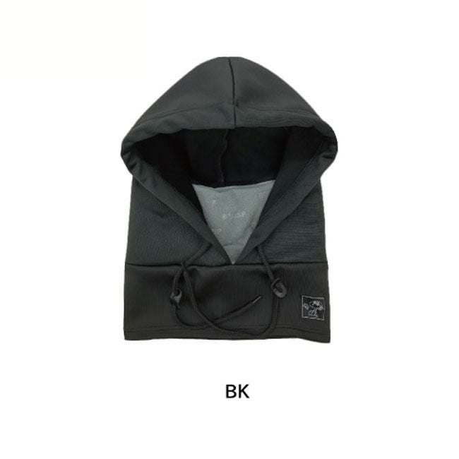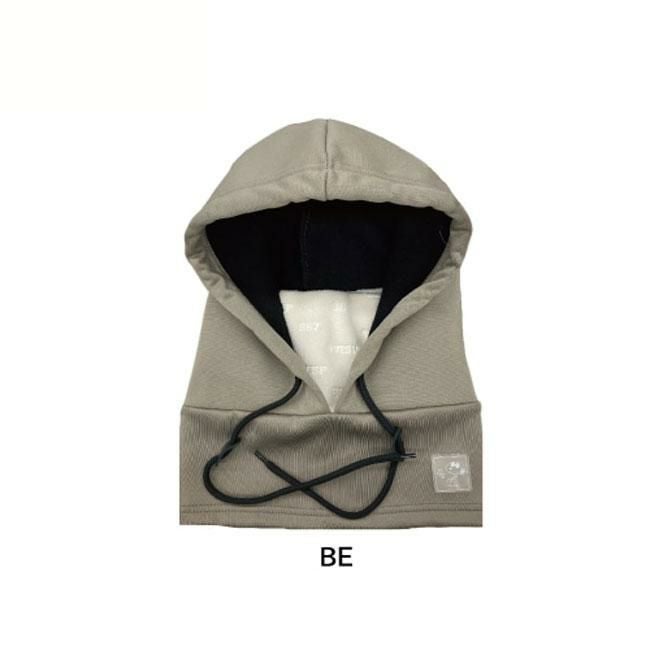 首周りはストレッチ撥水ニット、口周りはフリース、フード部分は防水スウェット素材を使用した、PEANUTSコラボフードウォーマー。