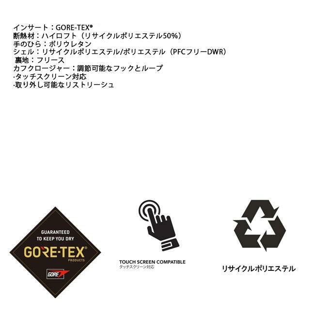 プロテクション機能と心地よい装着感、防水性と透湿性、耐久性、防水・防風など機能性に優れるGORE-TEXをインサートに採用したミトンタイプのグローブ。内部は5本指に分かれています。