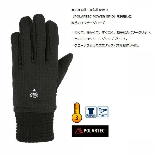 eb's エビス POLARTEC GRID INNER ポーラテック グリッドインナー HIGH WARM インナーグローブ スノーボード スキー タッチパネル対応 保温性 通気性 吸汗速乾 シリコングリップ 薄手 軽量 メンズ レディース 正規品 2025 2026モデル