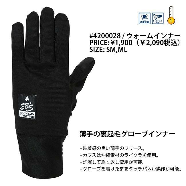 eb's エビス WARM INNER ウォームインナー グローブインナー 裏起毛 吸汗速乾 タッチパネル対応 スノーボード スキー 防寒 薄手 軽量 インナー 手袋 メンズ レディース 正規品 2025 2026モデル
