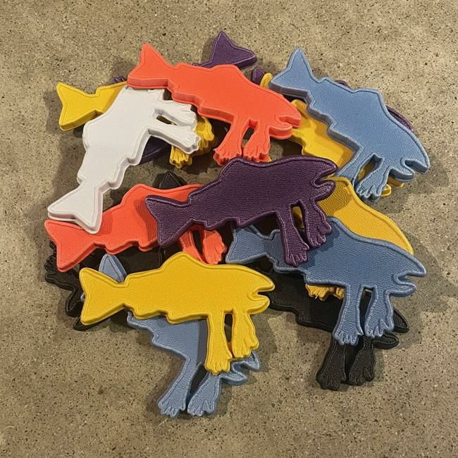 ロングカフのオーバーミットにデカデカとプリントされたサーモンのグラフィックをはじめ、