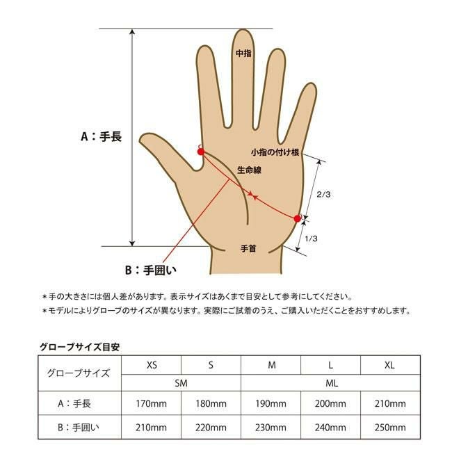 手の平には本革レザーを使用し、グリップ力と耐久性を向上。
