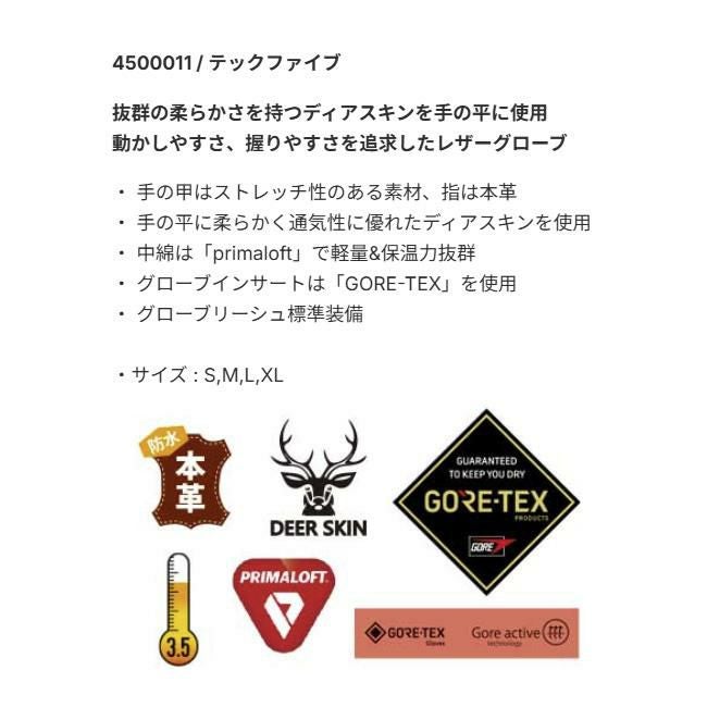 eb's エビス グローブ 5本指 TECH5 テックファイブ スノーボードグローブ レザーグローブ GORE-TEX ゴアテックス PRIMALOFT ディアスキン 鹿革 メンズ レディース 防寒 防水 撥水 通気性 正規品 2025 2026モデル