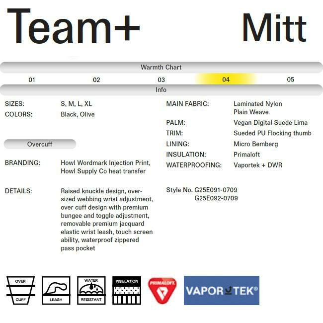 HOWL ハウル チームプラスミット TEAM+ MITT スノーボードグローブ ミトン メンズ レディース プリマロフト VAPORTEK 防水ミトン スマホ対応 タッチパネル対応 オーバーカフ バンジーアジャスト付き 防水ポケット付き スノボギア HOWLライダー監修モデル GOLGODA 2025-2026モデル HOWL正規取扱店