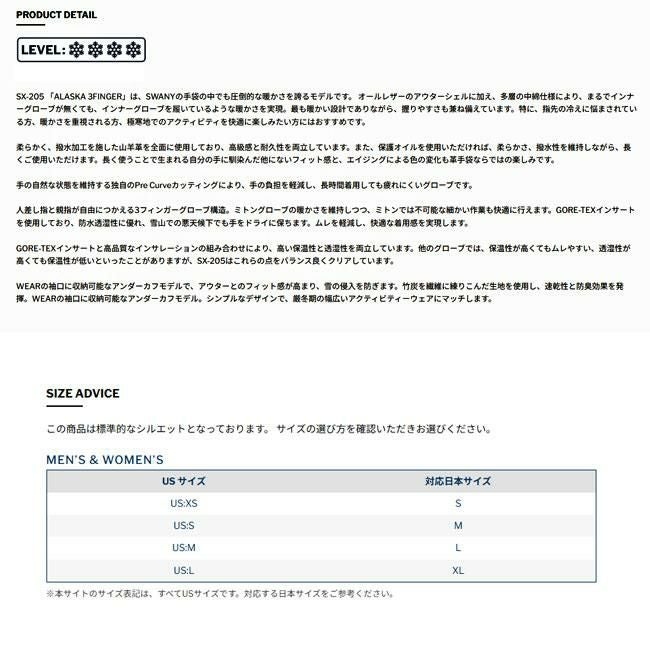SWANY スワニー Alaska アラスカ SX-205 3フィンガー グローブ 本革 山羊革 ゴートレザー GORE-TEX 防水透湿 スノーボード メンズ レディース 極寒対応