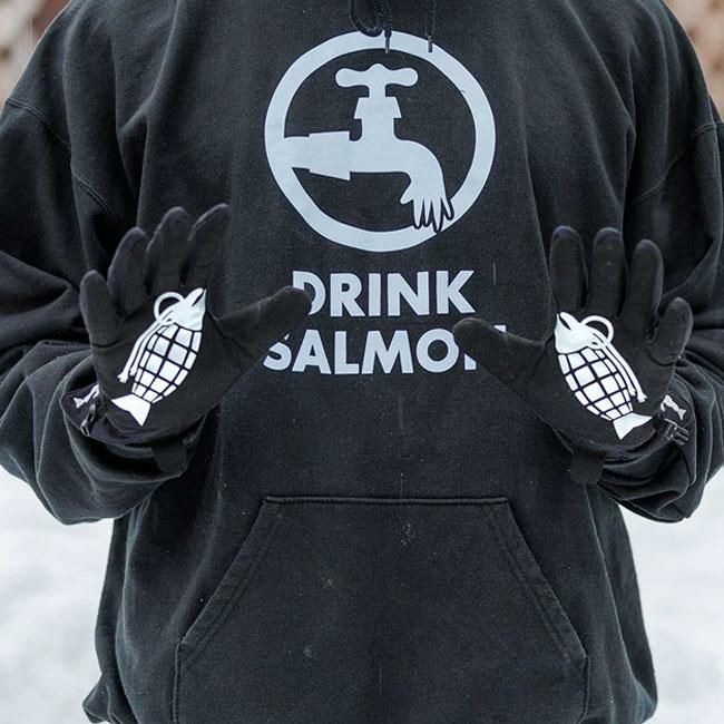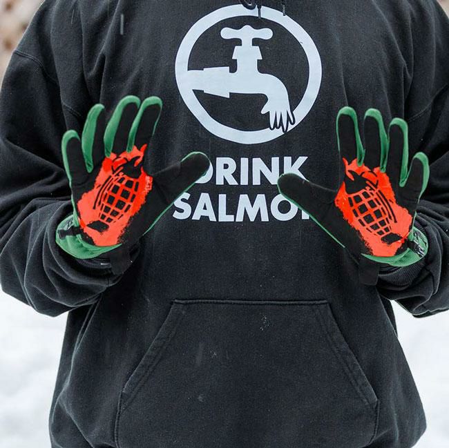 カナダ・マウントシーモアをベースとしたミトングローブブランドSALMON ARMSが2015年秋より、 日本上陸を果たす。バンクーバーのスノーボーダー、ニック・ヘリンガのアイデアで誕生したSALMON ARMSは、 ロングカフのオーバーミットにデカデカとプリントされたサーモンのグラフィックをはじめ、 ニック自らもサポートを受けるDINOSAURS WILL DIEやカナダのムービークルーD.O.P.E.、 と深く関わりを持つガレージブランド。これからの展開が楽しみなグローブブランドだ。