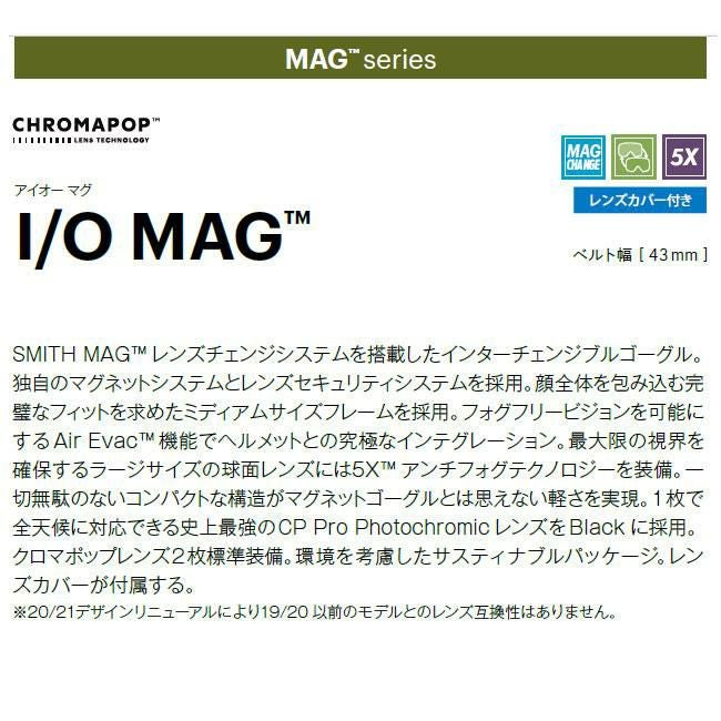 全天候対応の調光レンズ、MAGシステムによるワンタッチレンズ交換、曇りを抑える5Xアンチフォグ構造など、性能面も抜群。