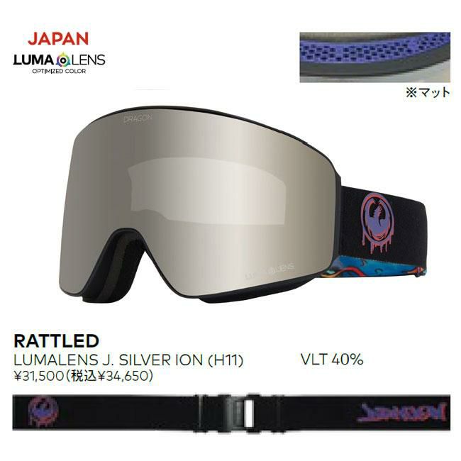 DRAGON PXV ゴーグル J.SILVER ION PANOTECH LENS 広視野 曇り 晴れ対応 ラージサイズ スノーボード スキー メンズ レディース ジャパンフィット ヘルメット対応 正規品 2025 2026モデル RATTLED スネーク柄 ワイドビュー 曇り止め バックルストラップ FREERUN
