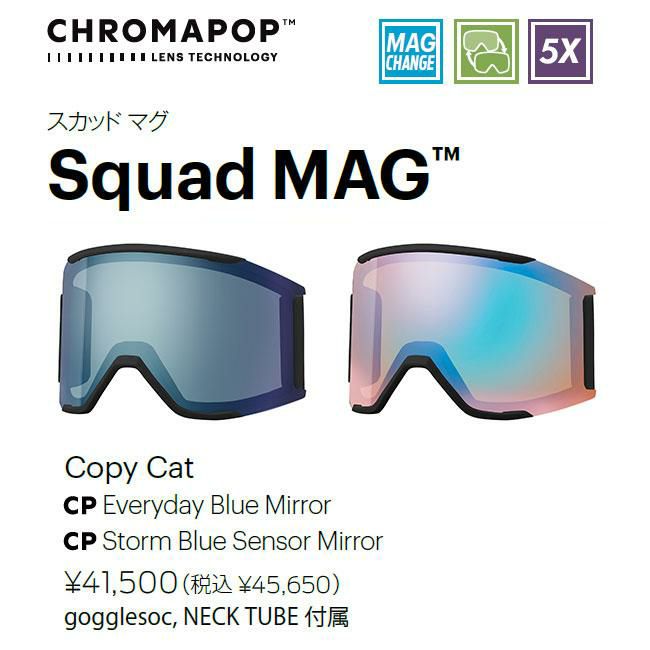 SMITH スミス スノーゴーグル SQUAD MAG スクワッドマグ COPY CAT コピキャット 平面レンズ 曇りに強い 曇り止め クロマポップレンズ