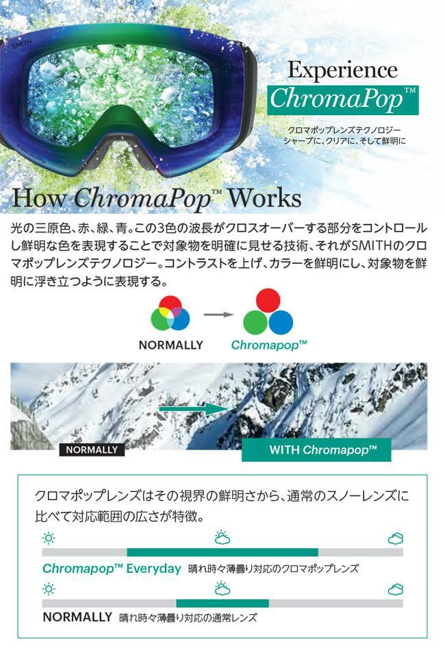 クロマポップレンズは通常のスノーレンズに比べて対応範囲の広さが特徴。