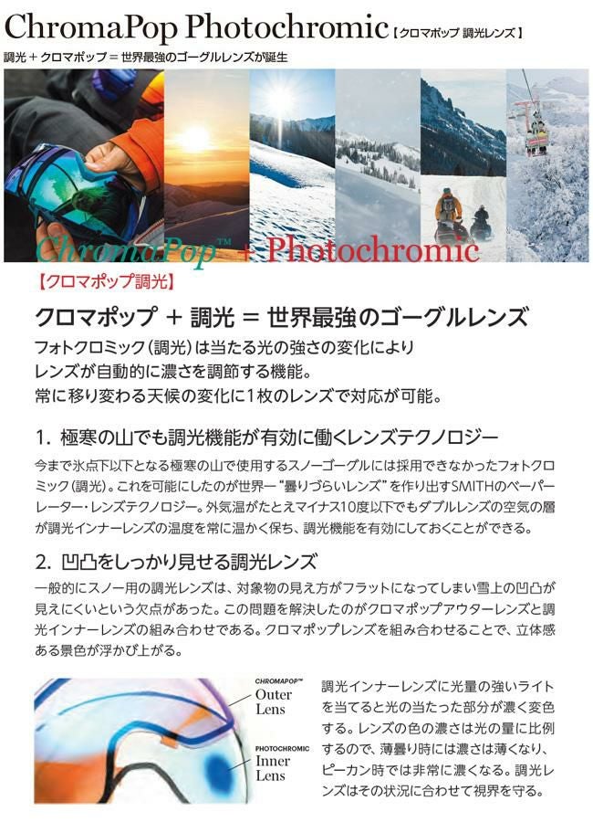 クロマポップレンズは通常のスノーレンズに比べて対応範囲の広さが特徴。