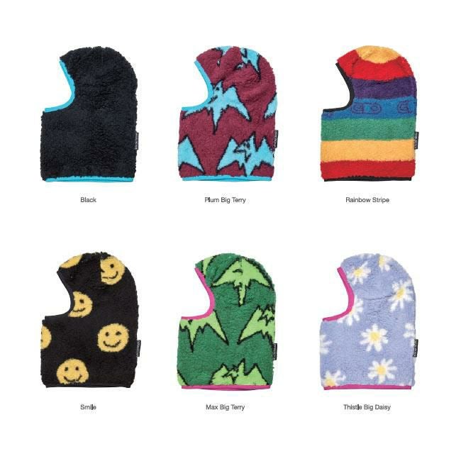 エアブラスターのフリース製フェイスカバー。楽しいプリント柄が勢ぞろい。