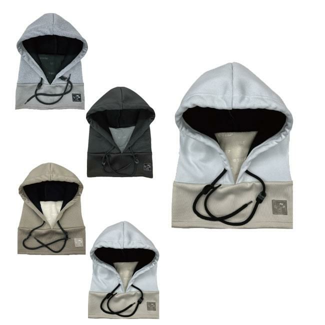首周りはストレッチ撥水ニット、口周りはフリース、フード部分は防水スウェット素材を使用した、PEANUTSコラボフードウォーマー。