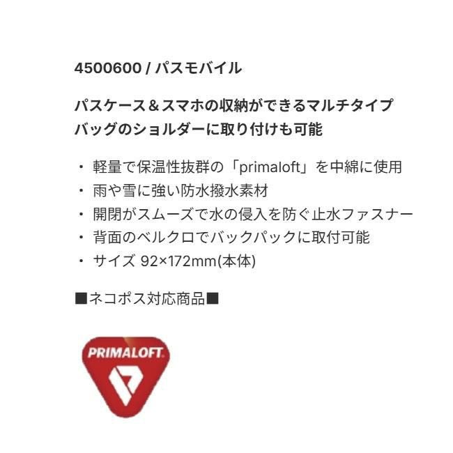 ▼ eb’s(エビス)の「PASS MOBILE(パスモバイル)」は、スマートフォンとリフト券をまとめて収納できるマルチタイプのスノーアクセサリー。軽量で保温性に優れた「Primaloft(プリマロフト)」を中綿に使用し、止水ファスナーと撥水素材で雪や雨をシャットアウト。バッグやショルダーにも取り付け可能で、機能性・デザイン性ともに優れたスノーギアです。