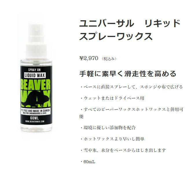 ビーバーワックス BEAVER WAX ユニバーサル リキッド スプレーワックス スノーボード スキー 滑走 ワックス チューンナップ