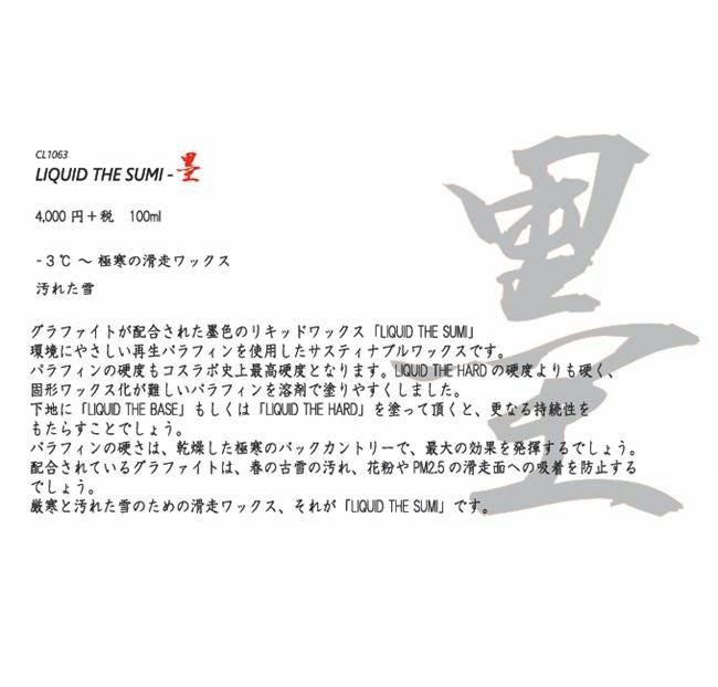 極寒と汚れた雪の為の滑走ワックス、それが「LIQUID THE SUMI」です。