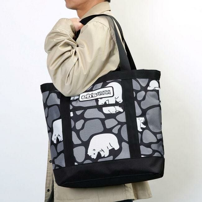スノーボードトリップや日常使いにも最適なeb's CONTAINER TOTE。巾着式の開閉口で荷物の出し入れが簡単。手持ち・肩掛けどちらでも使える2WAY仕様。キャリーバッグとジョイントできるスリット付きで、CONTAINER WHEELとのセットアップも可能。使い勝手抜群の22Lトートバッグ。