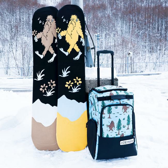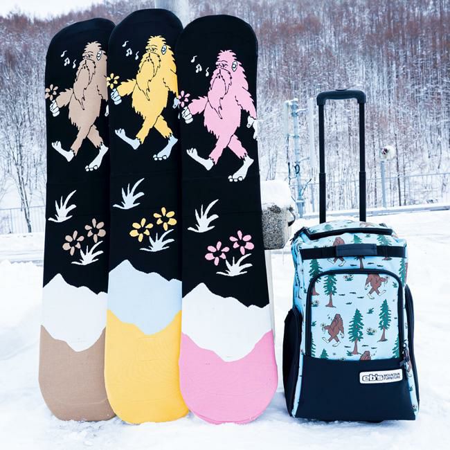eb's(エビス)の「KNIT COVER YETI(ニットカバー イエティ)」は、雪男モチーフのユニークなデザインが目を引くボードカバー。通気性と吸水性に優れたニット素材を使用し、湿気やサビからボードを守ります。伸縮性のある構造で出し入れも簡単、さらに内側補強付きでエッジによる破れを防止。機能性と遊び心を両立した人気モデルです。
