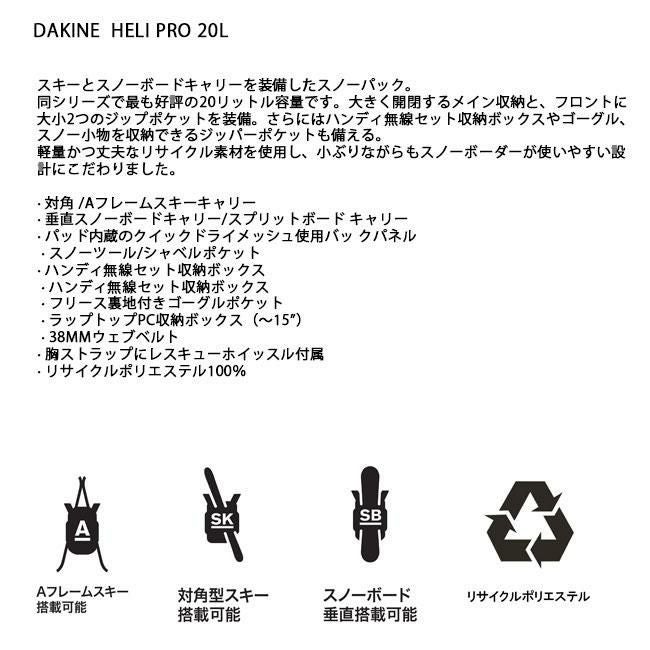軽量多機能!定番バックカントリーパック ダカイン DAKINE ヘリプロ バックパック HELI PRO BACKPACK 20L メンズ レディース 25-26 スノーボード リュック バックカントリー 正規品