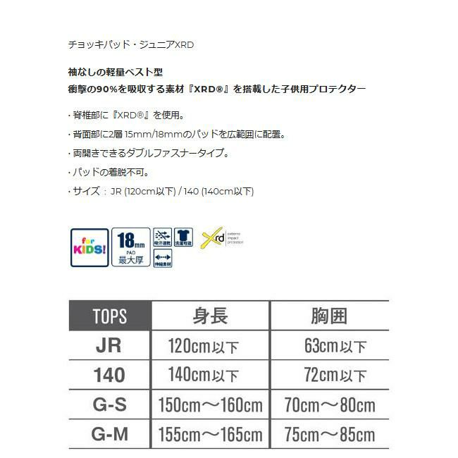 【eb's商品2点以上購入で5%OFFクーポン】ジュニア専用!XRD搭載ベスト型プロテクター エビス eb's チョッキパッドジュニア XRD CHOKIPAD-JR PORON XRD スノーボード プロテクター ジュニア 背中 胴体 ベストタイプ 正規品
