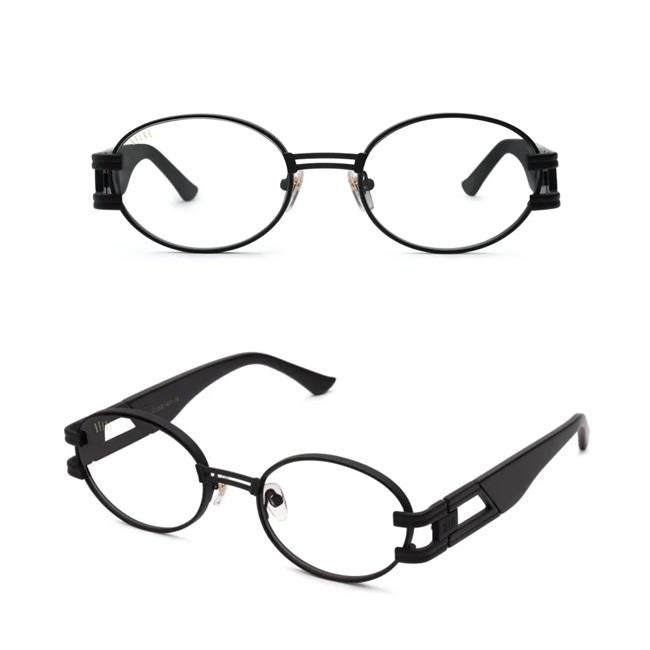 コーディネートしやすいオーバル型で、重厚感のあるアームが特徴的なフレーム。