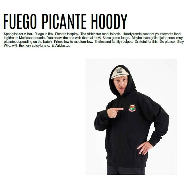 スパングリッシュでV.ホット。フエゴは火。ピカンテは辛い。エアブラスターマークはその両方。地元のお気に入りの正統派メキシカン・タケリアを