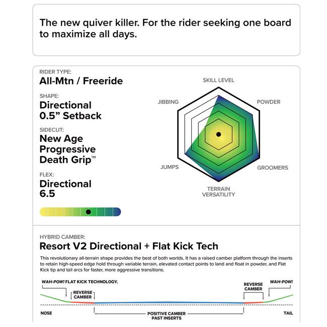 Resort V2 Directionalキャンバーにより、どんな地形でもしっかり踏めて、しっかり抜ける。
